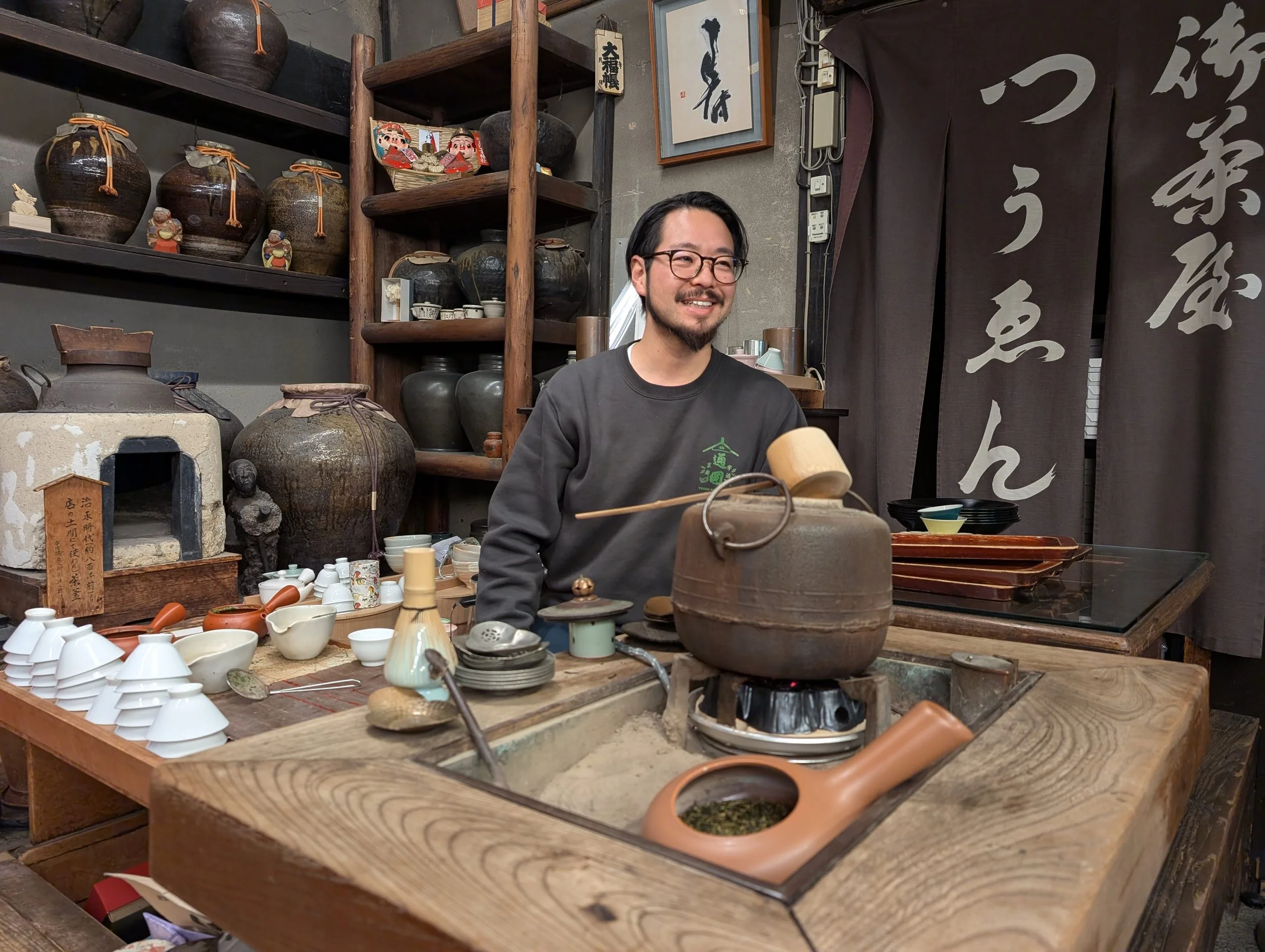 Only in Japan the idea of a healthy tea can incite so much romance and mysticism. Tea making is a science and an art in itself. While the whole world is obsessed over coffee, it's refreshing to be in a land where you can sip tea that has tremendous health benefits. Town of Uji, the birthplace of Macha tea, was a surprise visit. A small, slow, elegant and beautiful small town just 30 min train ride away from Kyoto. Design elements and aesthetics stood out distinctly in this town from the rest of Japan. It reaffirmed my belief that there is more to Japan than just the tourist places we were visiting. Our highlight from Uji was to visit Tsuen Tea, the oldest tea shop in Japan (and arguably in the world) founded in 1160 during the Heian period and now being continuously run by its 21st generation. They didn’t expand and just stayed at the same place alongside the beautiful river of Uji.